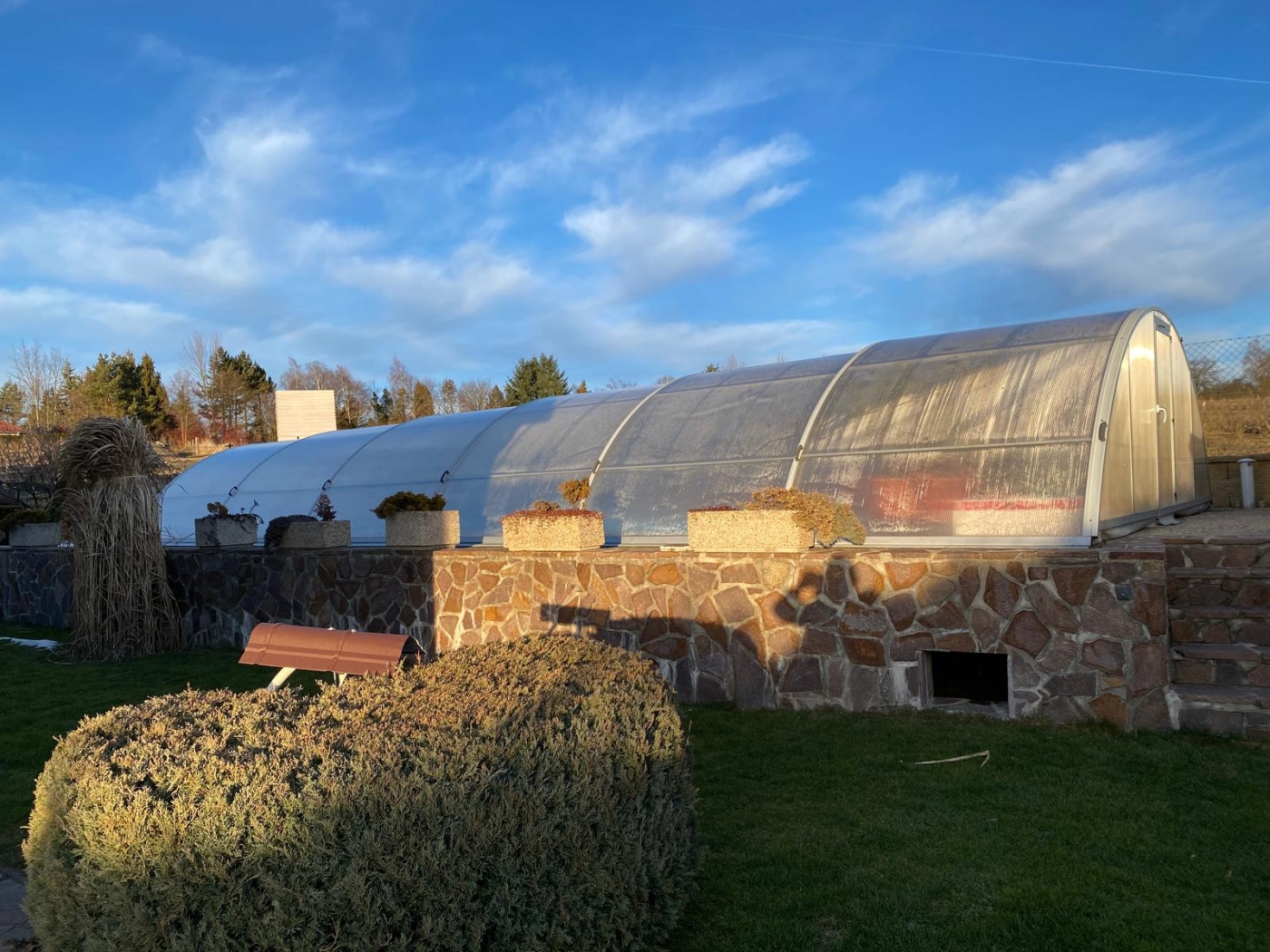 Slouží k odpočinku a relaxaci. Zastřešený bazén je 10 x 4 metry s technologií na slanou vodu.