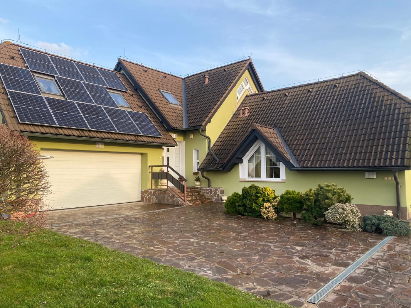 Součástí domu je také garáž, pro dvě auta, se sekčními garážovými vraty na dálkové ovládání pro pohodlné parkování. Součástí garáže jsou dvě nabíjecí stanice pro elektromobil.